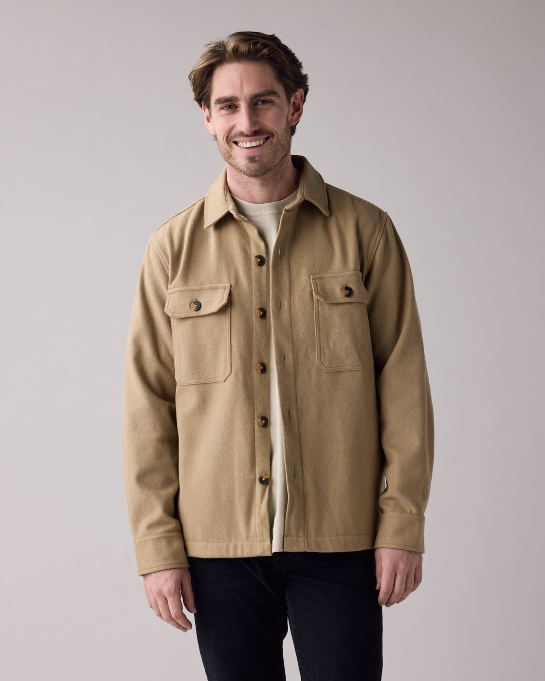 Our standard fit has a regular cut that offers more room to move and layer than our tailored styles. See our sizing chart for further details.