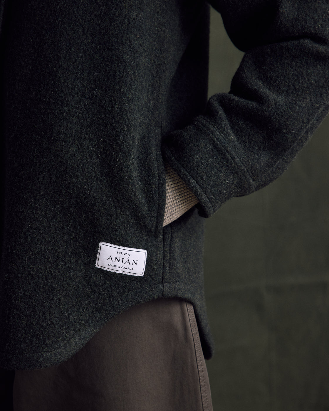 • Lofted 16-oz (540 GSM) 80% post-consumer recycled wool / 20% nylon combines warmth and weather resistance.